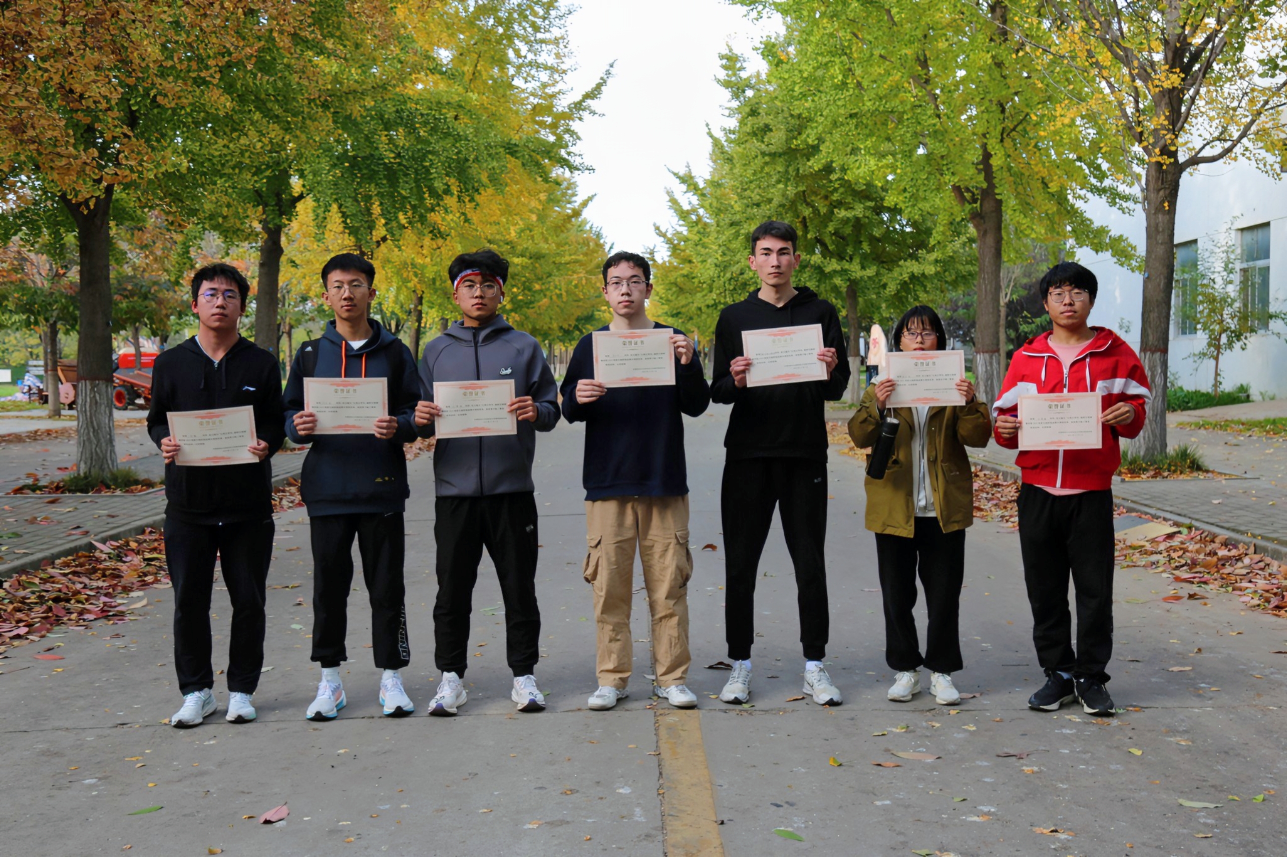 本次越野赛推出竞速赛道和趣味赛道两种形式,各位同学基于自己的实际情况按需选取。一年一度的越野赛如期开赛,一声令下,百余人百余人蜂拥而上,纷纷抢占先机。在骑手的带领下,竞速赛道的同学们先开始了比赛,大家都调整呼吸,坚定意志,努力向终点冲去,两旁的志愿者们热烈地为新生们鼓励加油。趣味赛道的同学们也没有丝毫懈怠,持着校园明信片,在到达打卡点时积极参加校史校情答题,认真收集完每个打卡点的盖章,集齐了“诚朴勇毅”四字盖章。赛后,由文体部为获奖同学颁发荣誉证书,并在理科楼前合影留念,为此次比赛画上圆满的句号。