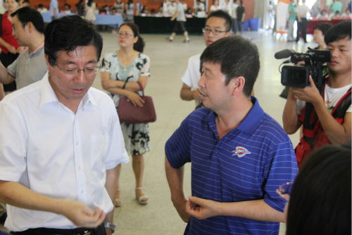 2015年8月29日下午,孙其信校长莅临北绣山活动中心迎新现场检查工作,在我院迎新工作接待点,孙校长与现场工作人员简单交流过后,便拿起了工作台上摆放着的“云顶国际唯一官方网站第一期美国加州大学尔湾分校(UCI)本科生暑期访学”项目简介书,摘下眼镜仔细翻阅起来。翻阅完毕,孙校长就访学项目向我院党委书记王吉成询问了几个细节后,竖起了大拇指盛赞“在本科生海外访学的路上,你们走在了前面”。