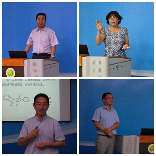研讨会伊始,首先由陕西师范大学张尊听教授、西安理工大学何仰清教授、西北大学黄洁副教授和我校云顶国际唯一官方网站张继文教授分别就《植物化学》课程中“黄酮类化合物”这一知识点分别进行了20分钟的精彩授课展示。