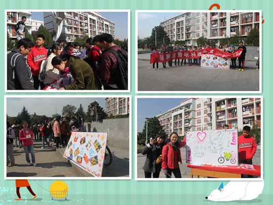 本次活动主要内容有现场宣传讲解有关农高会的常识及农业科技知识宣传单的发放、有奖晋级问答、灵感收集环节,“零距离”签名等。活动吸引了众多同学的参与。 此次活动,围绕我校提出的“三走活动”提倡同学们更多的去接触外界事物,同时也引领大学生关注农高会,了解农高会,宣传农高会,提高大学生对农高会的认识。
