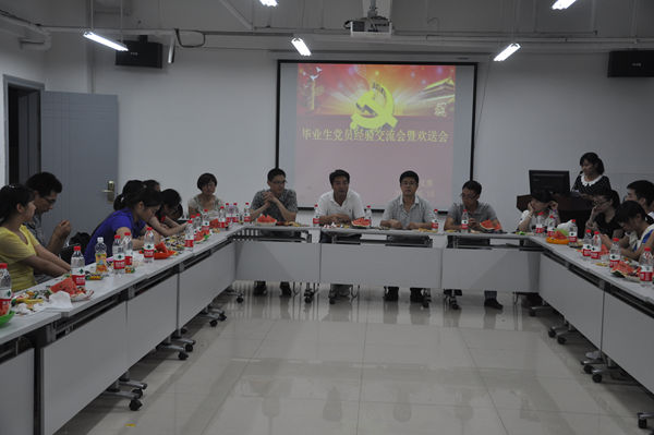 在党的第93个生日即将到来和2014届毕业生即将离校之际,云顶国际唯一官方网站应化1支部于6月16日19:30在理科楼E334会议室隆重召开毕业生党员欢送会暨经验交流会。学院党委书记欧文军、党委副书记程晓盈出席会议,应化1支部书记程玉峰老师、党务秘书王晨老师、团工委书记王磊老师和应化专业党员、积极分子40余人参加了会议。