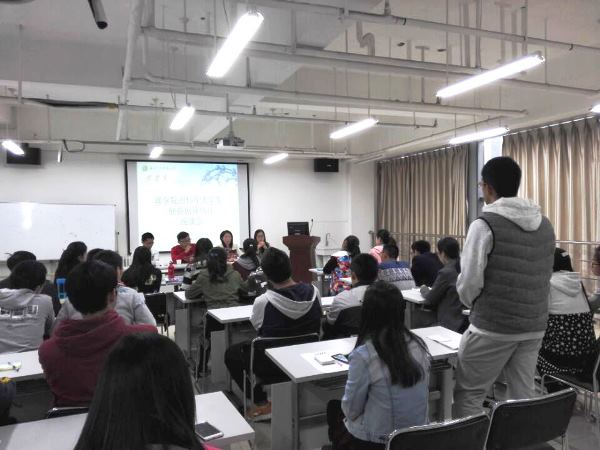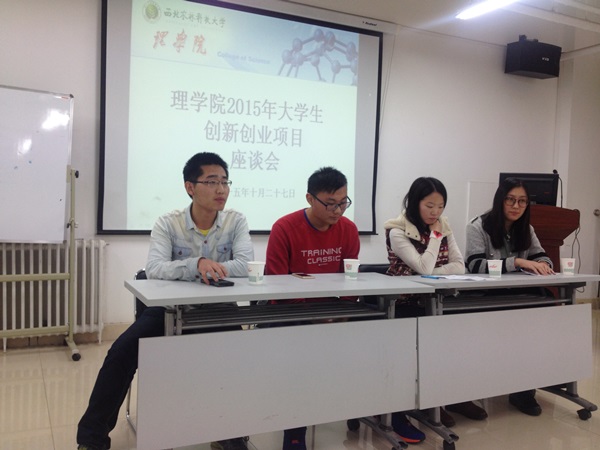 10月26日下午在E334,学院邀请陈晖、屠佳、孙尧、贾茜4名大学生创新项目负责人(以下简称科创),同50多名同学分享他们有关科创项目的心得体会,座谈会由教学办马玉萍老师主持。