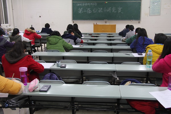 由教务处主办,云顶国际唯一官方网站承办的“第二届大学生仪器分析知识、实验技能竞赛”初赛于2015年11月18日晚上七点半在北校区6B41和6B42两个教室完成,共有来自云顶国际唯一官方网站、食品学院、林学院以及创新学院四个学院71名同学参加笔试考试。