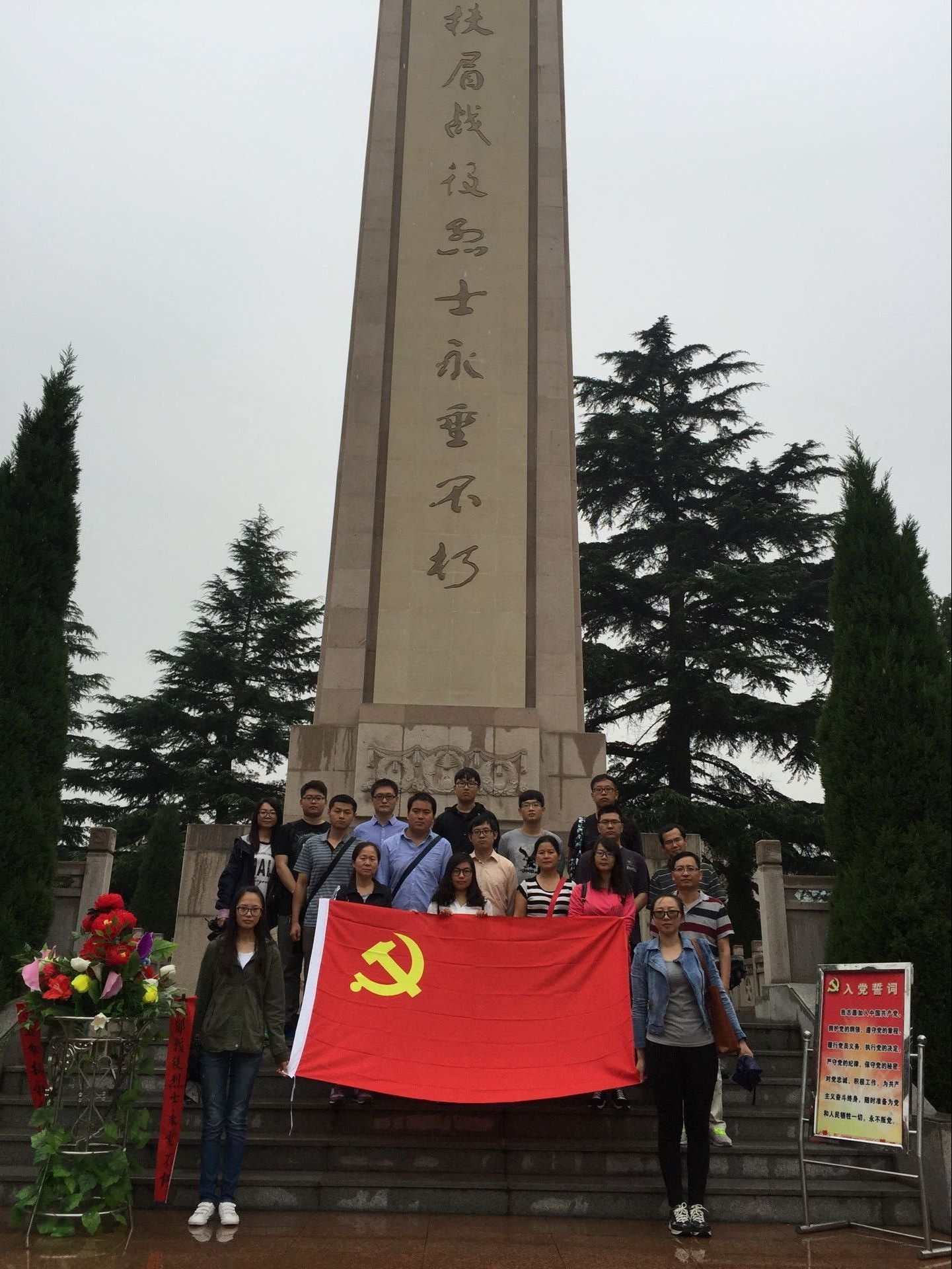 六十多年前,烈士的鲜血洒在了这片黄土地上,他们用鲜血和生命换来了我们今天和平、富足、宁静的生活。随着时间的推移,那些慷慨悲歌和泣血抗争离我们逐渐远去,飞速变革的时代带给我们更多的冲击与改变,为了让师生党员在这个信息高速发达的时代铭记历史、坚定理想信念、爱党爱国,药物化学团队党支部全体党员选择在这个特殊的日子里学习党史、缅怀先烈,在烈士纪念碑前庄严宣誓,为革命先烈敬献花圈。