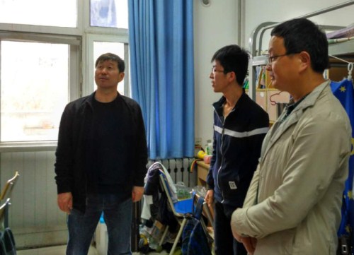 4月7日,学院党委书记王吉成、副书记何玉杰率本科生思想政治辅导员廖仁梅、研究生干事付弦等深入学生宿舍走访调研。