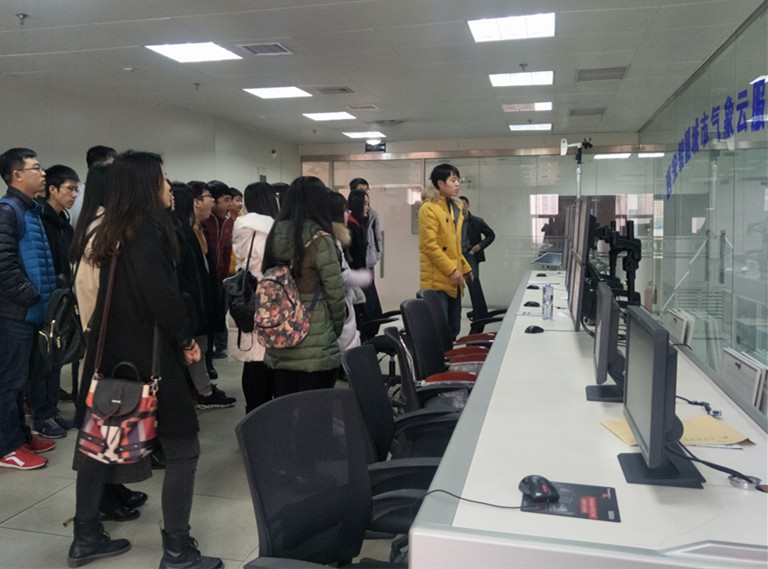 同学们首先参观了气象工作展览室,了解西安市气象局基本情况。接着,气象台台长赵荣向大家全面介绍了气象业务服务工作的相关知识;高级工程师徐军昶带领大家依次参观了公共气象服务中心、人工影响天气办公室、影视中心,并指导同学们在大气探测保障中心、云服务实验室进行实习。通过参观和实践,同学们了解了天气预报的制作、城市气象服务情况,学会了气象数据采集、应用、处理的方法。