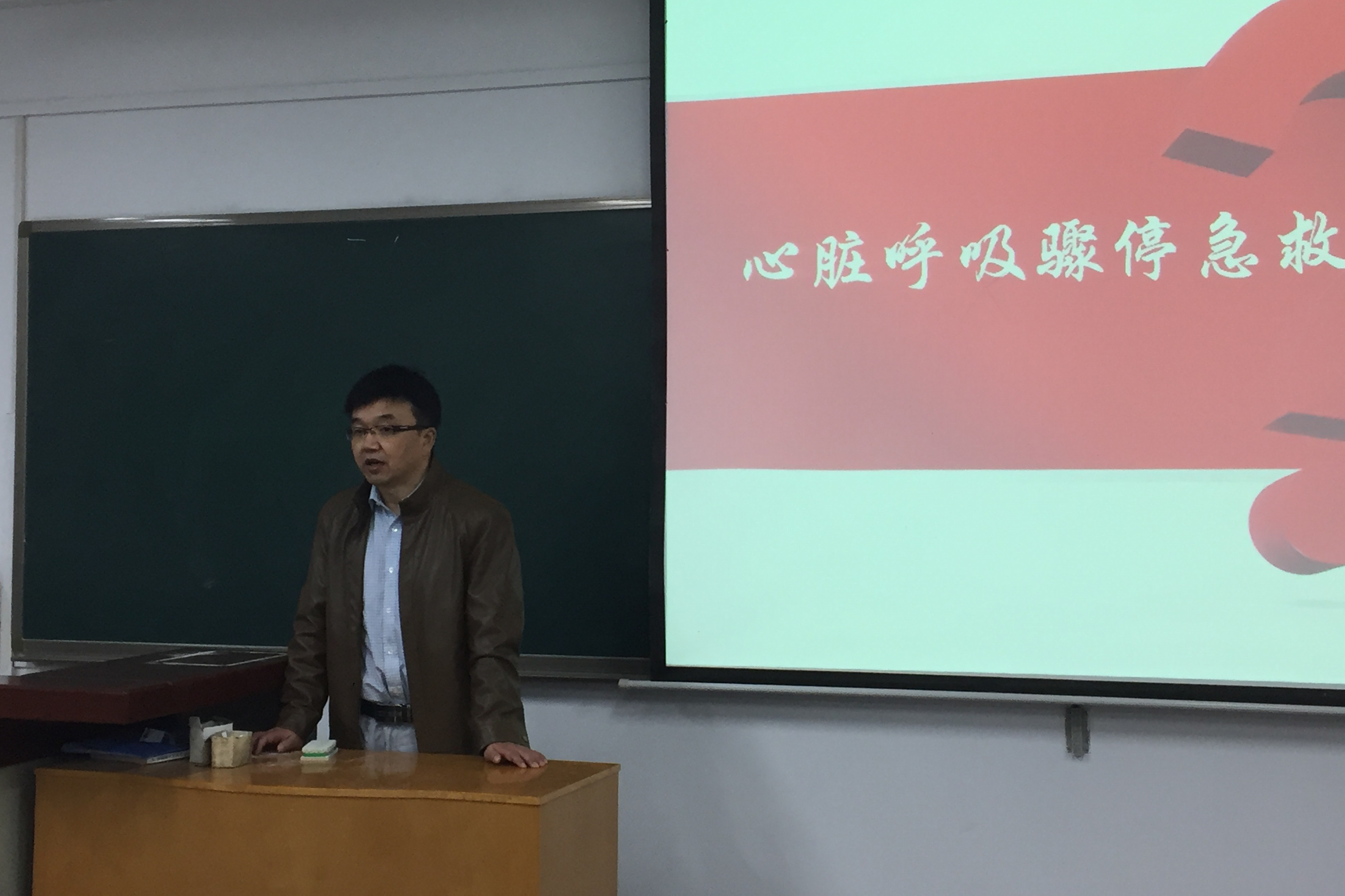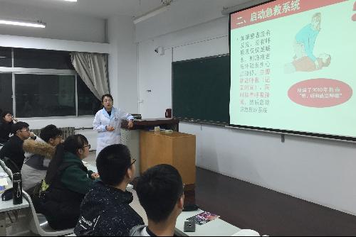 张明科副院长讲到,党的十九大报告提出实施“健康中国”战略,提高人民群众基本医疗卫生意识与水平是一项重要的内容。近年来,心脏呼吸骤停、运动猝死等事件不断见诸媒体,缺乏必要的急救知识导致错过挽救生命的黄金时间,酿成了不少悲剧。青年学生参加体育活动频率较高,接受心肺复苏急救知识培训非常有必要。
