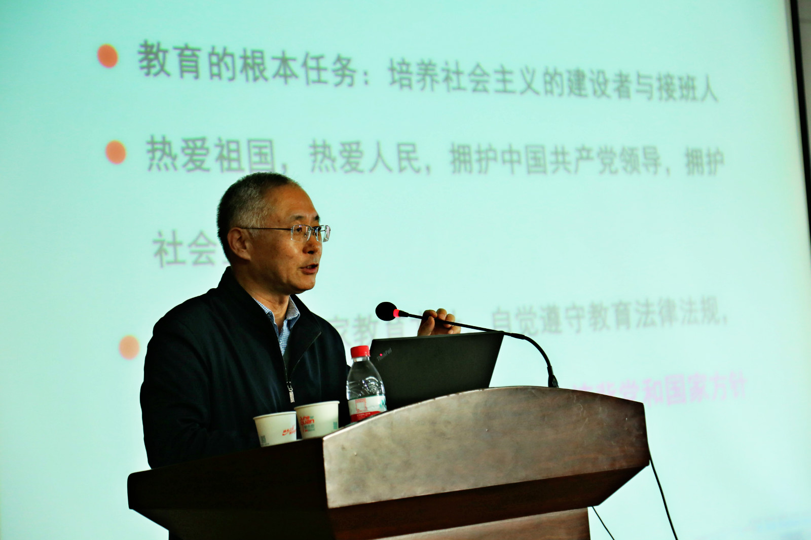 对标总书记“四有”教师要求,结合国家教育法和学校师德师风有关规定,蔡焕杰从道德规范、行为准则和情操品质讲解了师德师风的基本内涵,诠释了其规范对象包含教师、教育管理工作者、教辅人员等一切教育工作者,为践行师德师风树立了基本准则。以山东曲阜孔庙“万世师表”题词为切入点,蔡焕杰教授带领参会教师回顾了我们国家尊师重教的悠久传统,强化了善为师者“既美其道,又慎其行”的教书育人古老准则。谈起我校马里留学生在其国内身为大学教师所受到的爱戴与尊敬及其自身职业自豪感,蔡焕杰阐明了教师这一职业在世界范围内受到尊敬的普遍事实,期待和大家一道共同进一步增进职业使命感与神圣感。