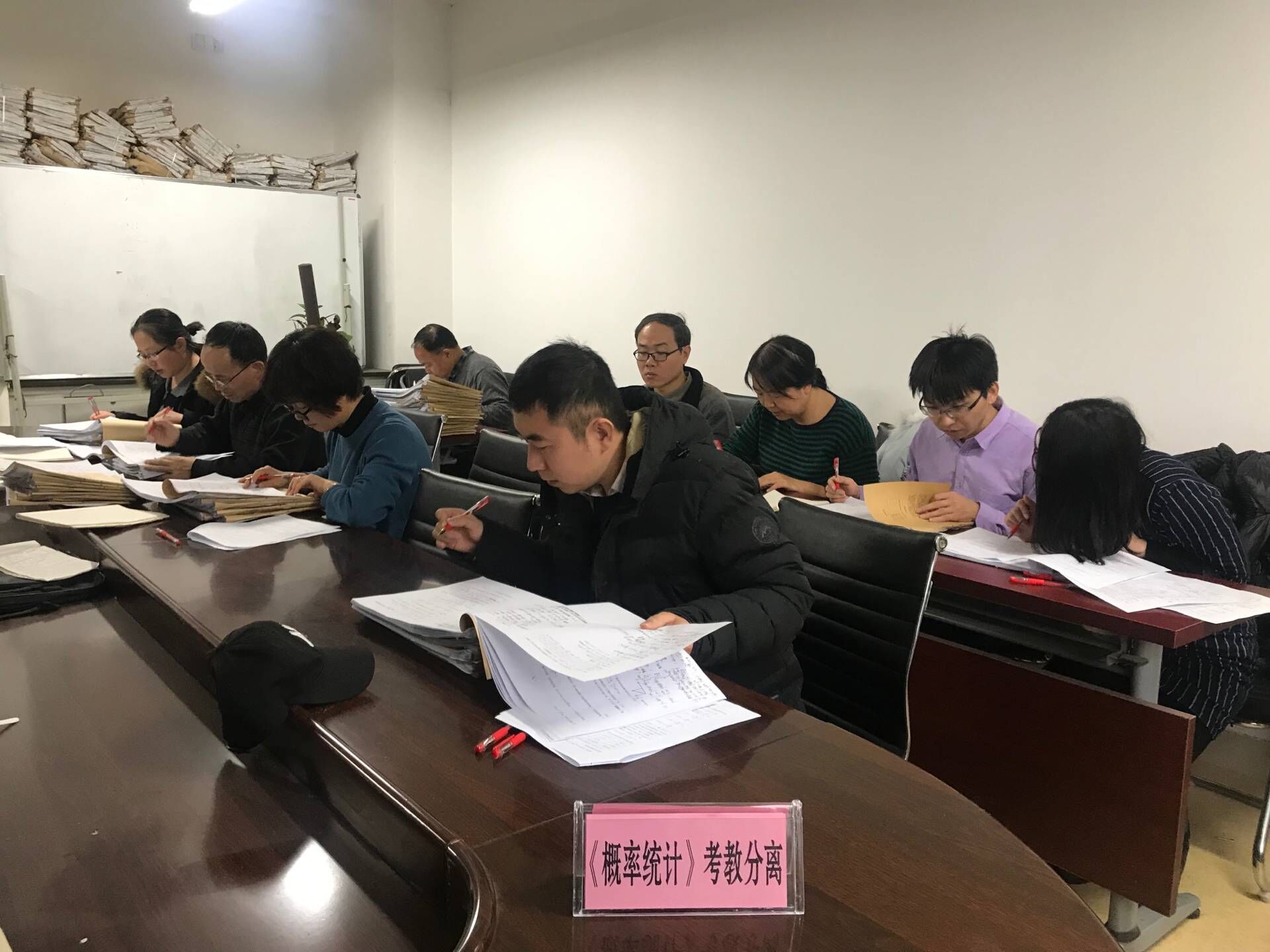 为贯彻落实全国教育大会精神,落实以本为本,推进考教分离,提升公共基础课程教学质量,近日,我院大学数学教学中心在理科楼A516会议室开展“2018-2019学年第一学期概率论与数理统计”期末考试集体阅卷,该中心10位承担教学任务的教师参加集体阅卷。