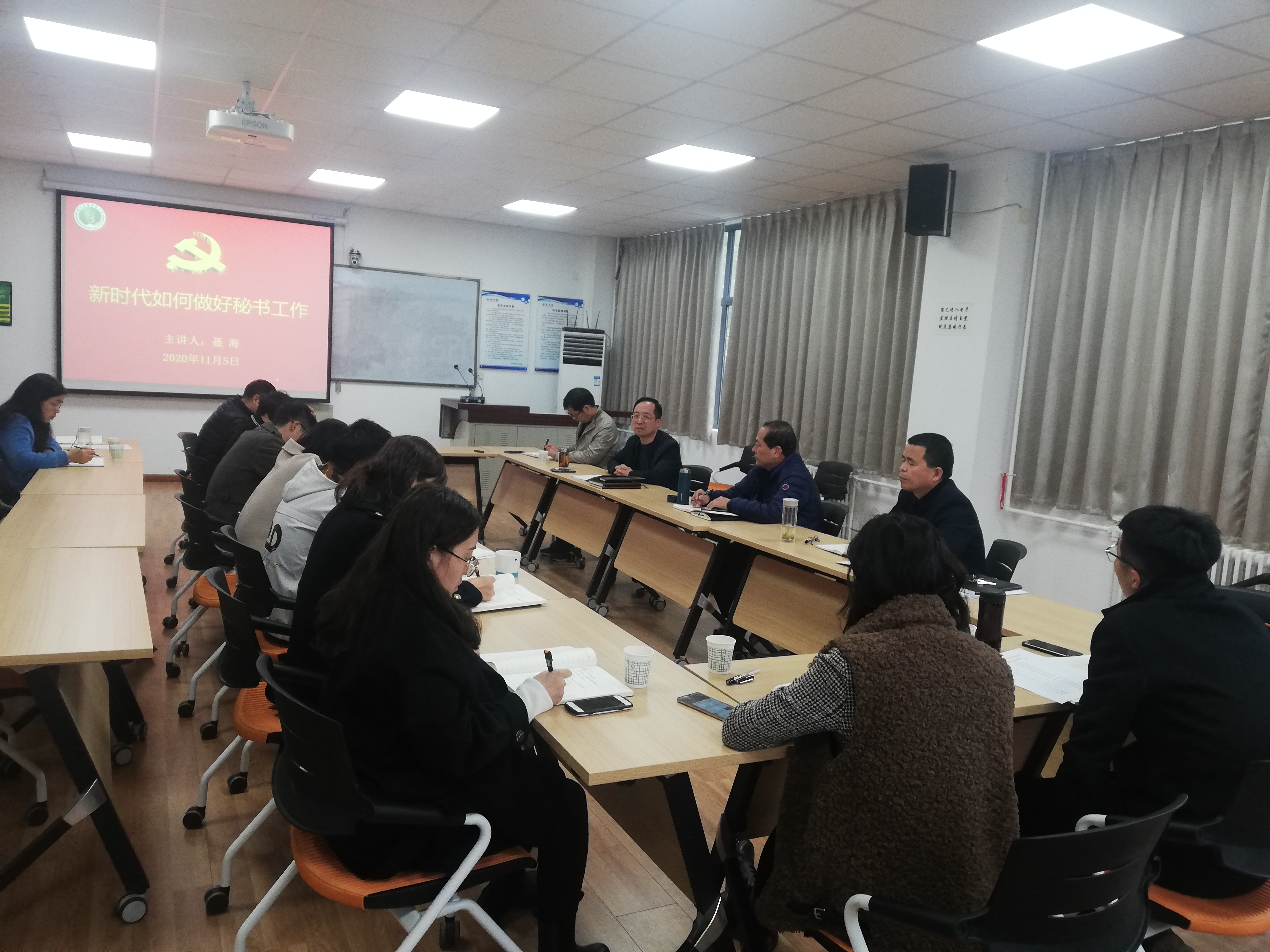 聂海从做好秘书工作的四个角色、四个关系、四个重点等“三个四”进行了分享,他认为好秘书要明晰服务员、参谋员、协调员、把关员等四个角色定位,处理好上下级关系、同级关系、被动与主动关系、效率与质量的关系,把握好加强学习有厚度、提升标准有高度、掌握规律有方法、建好团队有力量等四个方面的重点工作。他要求,办公室工作人员做好协调管理工作,落实好首问负责制,用心、用情、用微笑服务,不断提升办文办会办事水平。他提出,学院管理干部要提升创造性的学习能力,在工作中积极面对困难和问题,创新工作办法,互相支持和帮助,营造良好的团队氛围,为学院发展积极贡献力量。