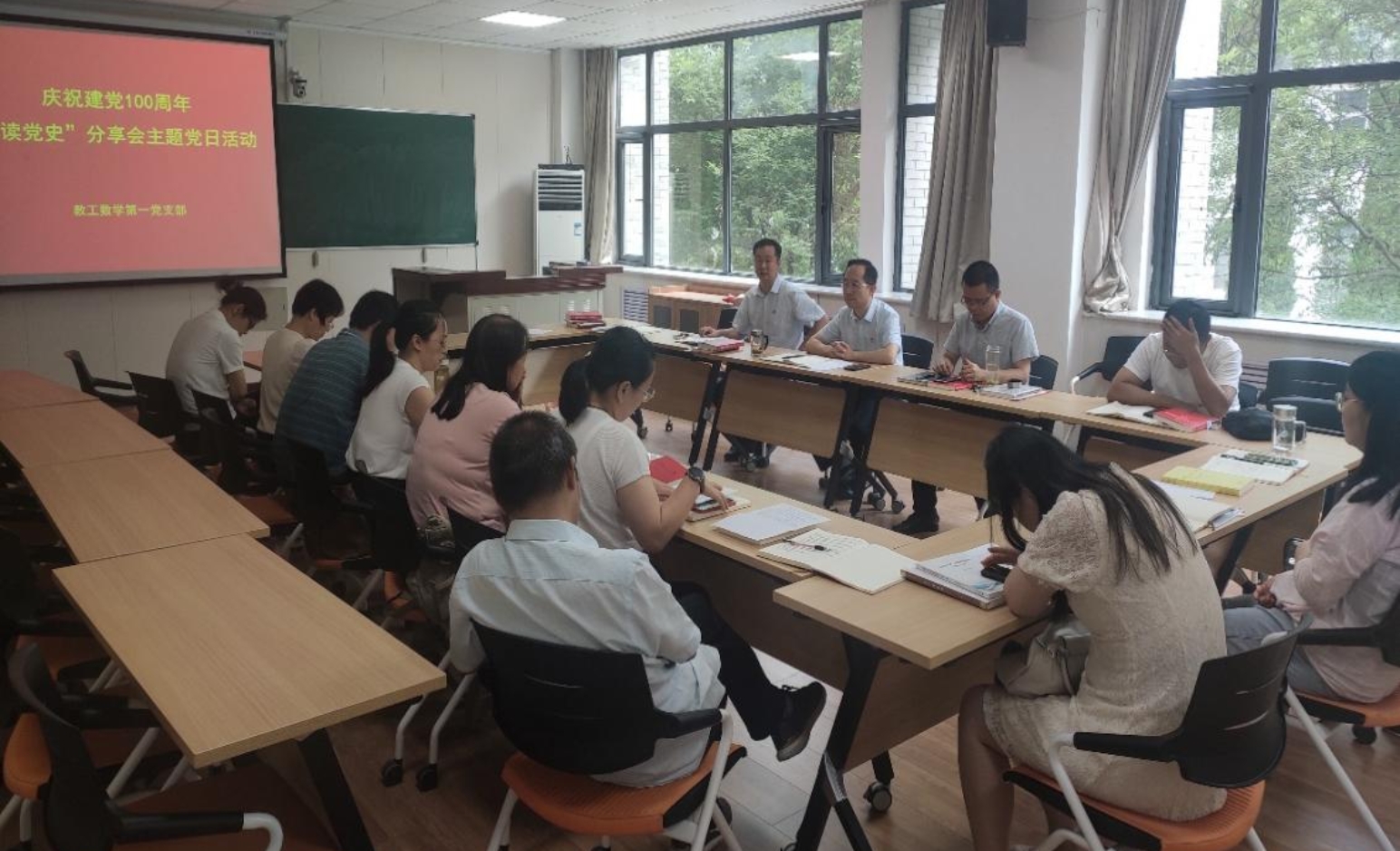 为迎接建党100周年,提升党史学习效果,增强支部的吸引力与凝聚力,提高“书香支部”建设水平,近日,教工数学1支部在理科楼A213会议室开展“读党史”分享会活动。党委书记聂海应邀出席,支部全体党员参会,活动由支部书记朱志勇主持。