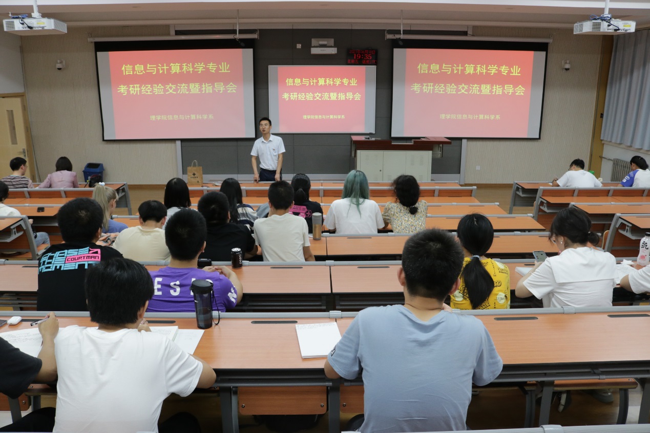 为持续推进党支部为师生办实事活动,6月18日晚,教工数学三党支部在N8T11教室举办了考研经验交流会。支部党员、专业课教师以及60余名信息与计算科学专业学生参加,交流会由信息与计算科学系主任杨斌主持。